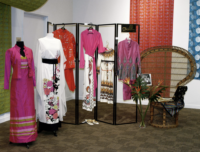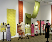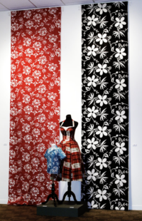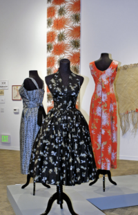 この展示では、シャヒーンが製作した中から代表作のテキスタイルデザインを100点以上展示。特にオリジナルのテキスタイルは美しい発色を維持した状態で人々を魅了しました。さらに、ハワイにおける多様な文化史を視覚的に訴えるファッションデザインを紹介しました。